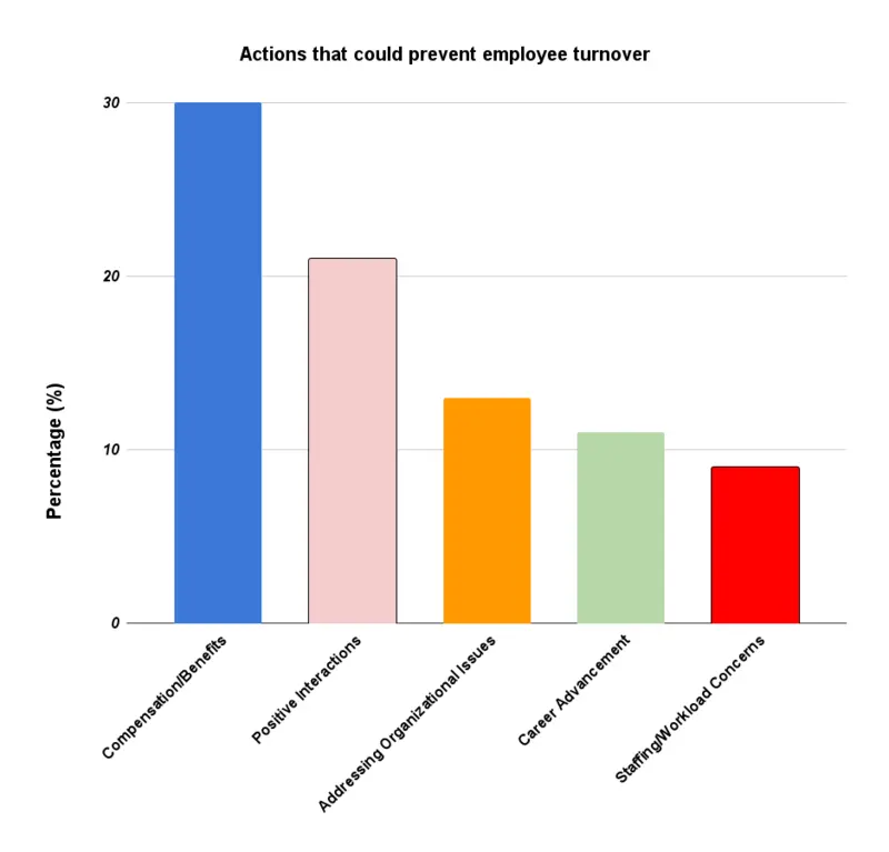 Compensation and Benefits: Thirty percent of preventable leavers cited additional compensation or benefits as a potential retention factor.